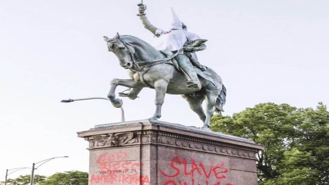 George Washington Statue in Chicago Vandalized With KKK Hood, Graffiti: ‘Burn the White House Down’