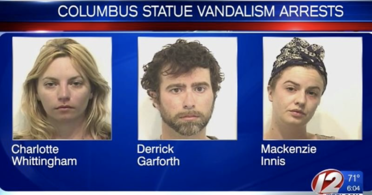 A Pawtucket teacher and two women have been arrested and charged with vandalizing a Christopher Columbus statue in Providence, Rhode Island.